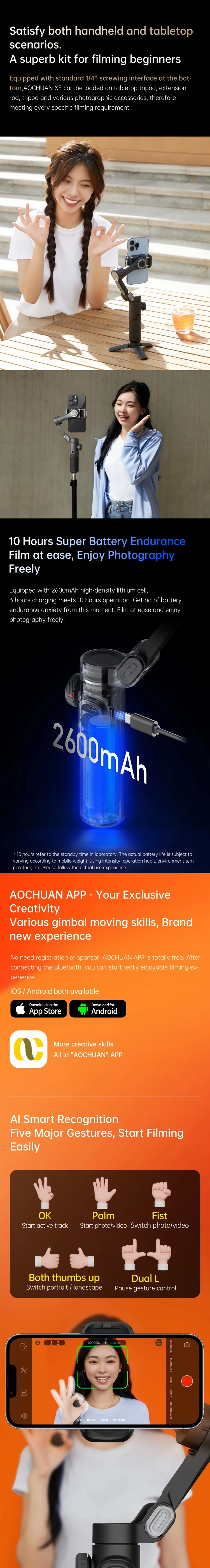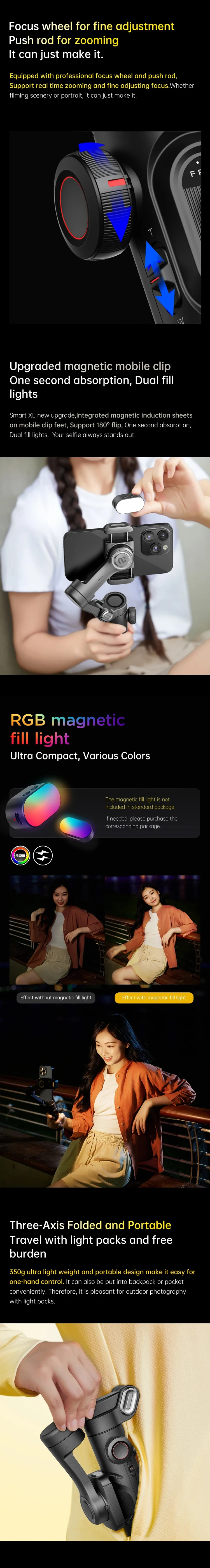 3-Axis Handheld Gimbal Stabilizer for Smartphone with Fill Light for Iphone Android Face Tracking Tiktok Vlog Smart XE