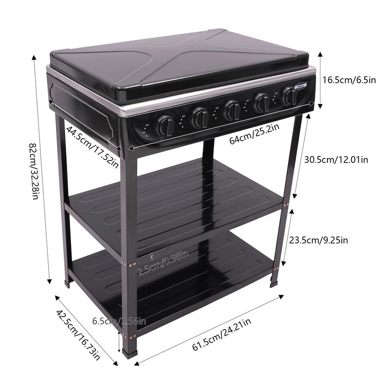 This natural gas stove with 5 burners is suitable for stir-frying, cooking pasta, boiling soup, etc., and is suitable for outdoor activities such as camping, fishing, RV travel, and emergency preparedness.