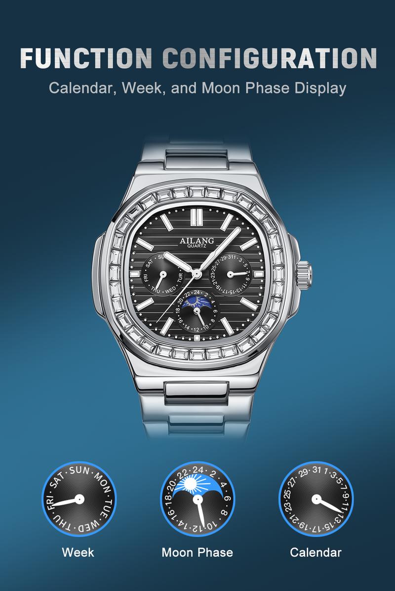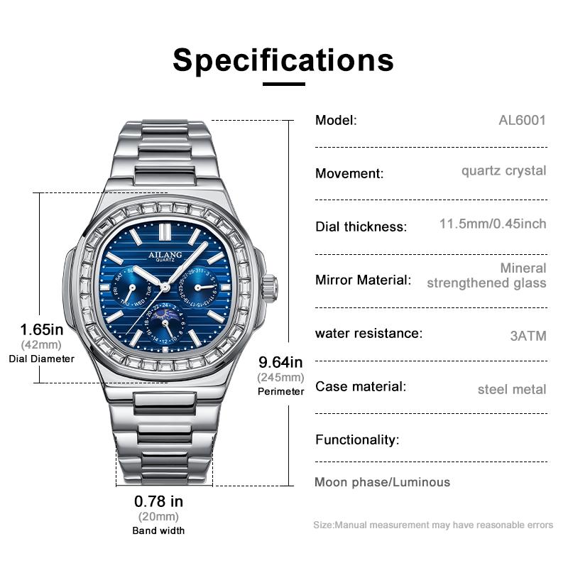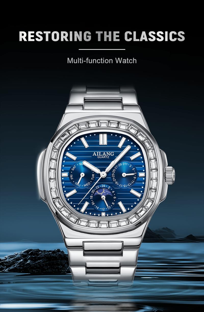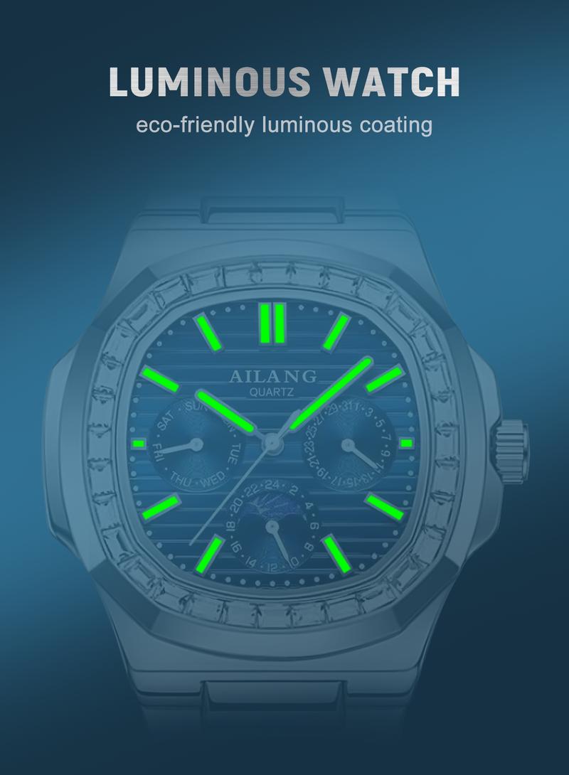 AILANG Exquisite Watch, Elegant Quartz Watch with Luminous Hand, Classic Business Rhinestone, and a Striking Blue Watch Face, a Stylish Gift for Any Occasion.