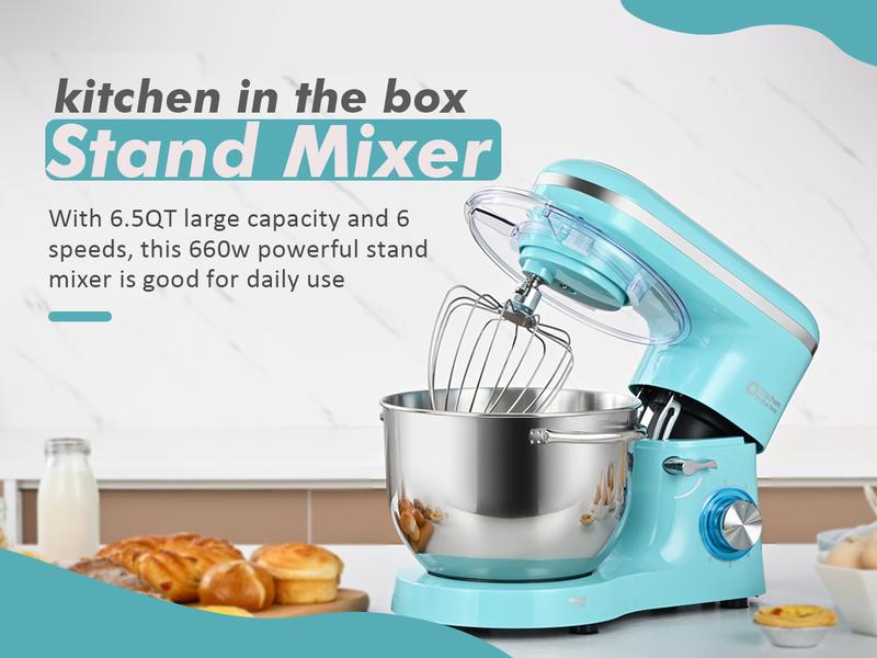 Kitchen in the Box 660W Tilt-Head Stand Mixer | 6.5QT Stainless Steel Bowl, 6-Speed Electric Food Mixer