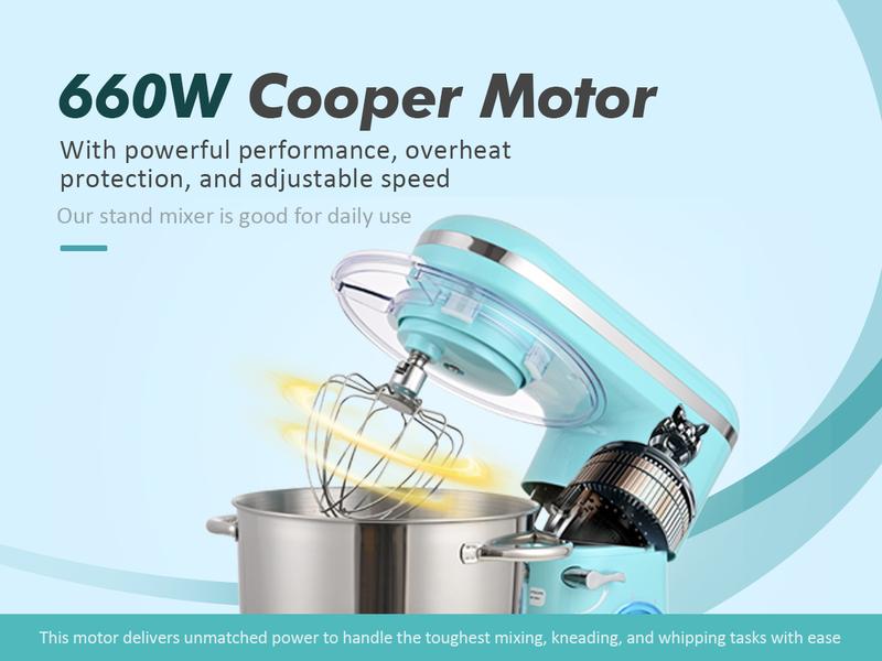 - 660W Powerful MotorEquipped with a 660W high-performance motor and a durable ABS shell, this mixer processes ingredients quickly and thoroughly. The built-in chip sensor automatically shuts off the mixer when overheating for added safety. It offers 6 speeds and a pulse function, ideal for various recipes.
