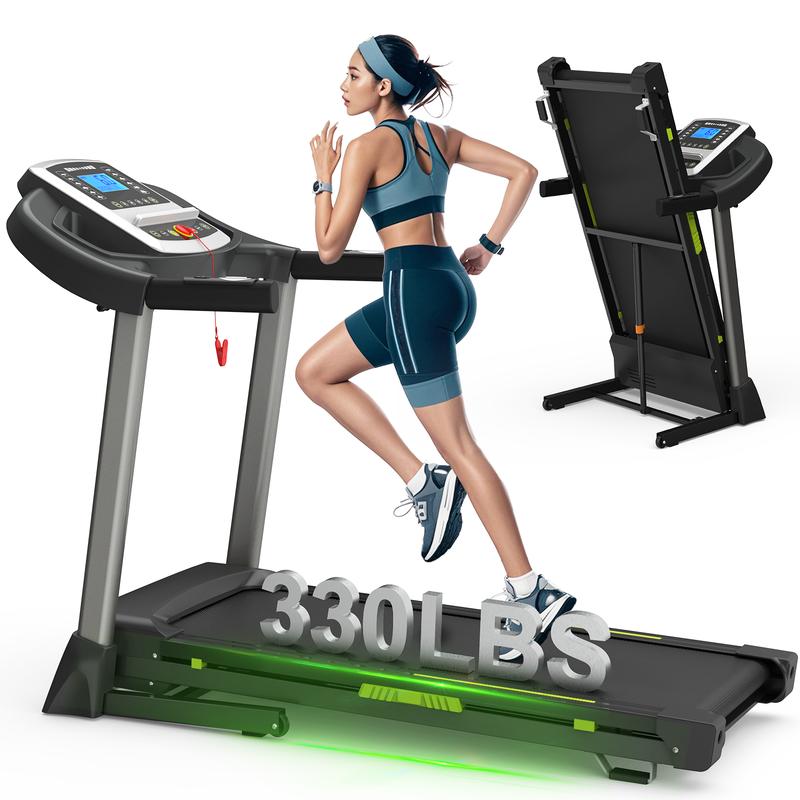 Heavy-Duty 330LBS Weight Capacity "Built to last! This treadmill supports users up to 330 pounds with a reinforced steel frame and anti-slip belt, ensuring stability and safety for all fitness levels."