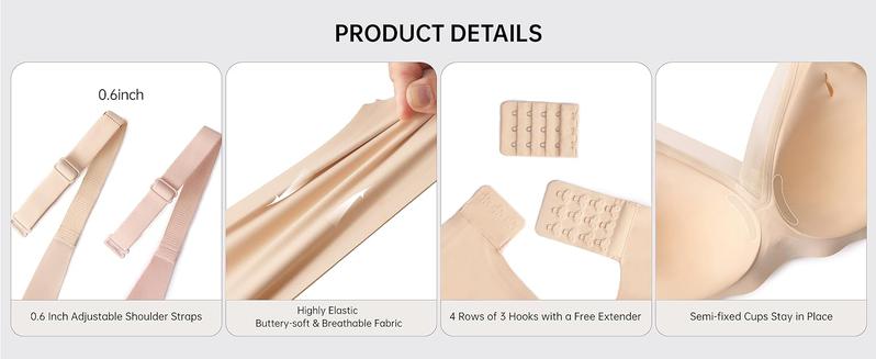 - 【Stylish Deep V Crossover Mesh Design】The flattering deep V-neck design enhances your curves with a rounded, uplifted shape, while the hidden cross-mesh construction remains discreet under low-cut clothing—no slipping or gaping. Designed for seamless comfort, the seamless bra hugs your body smoothly to create a flawless silhouette under T-shirts and dresses.