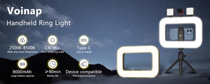【True-to-Life Color】The high CRI output of this handheld phone light helps maintain natural color tones in video and photo content. Adjustable temperature and brightness make the handheld ring light usable in varied indoor lighting. Designed for subtle illumination, the rechargeable selfie portable light prevents harsh shadows. The structured design works well as a flat square makeup light during prep or filming.