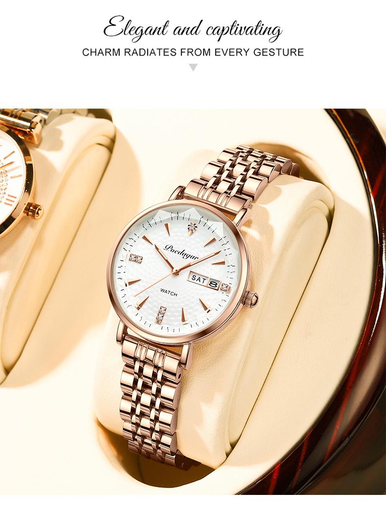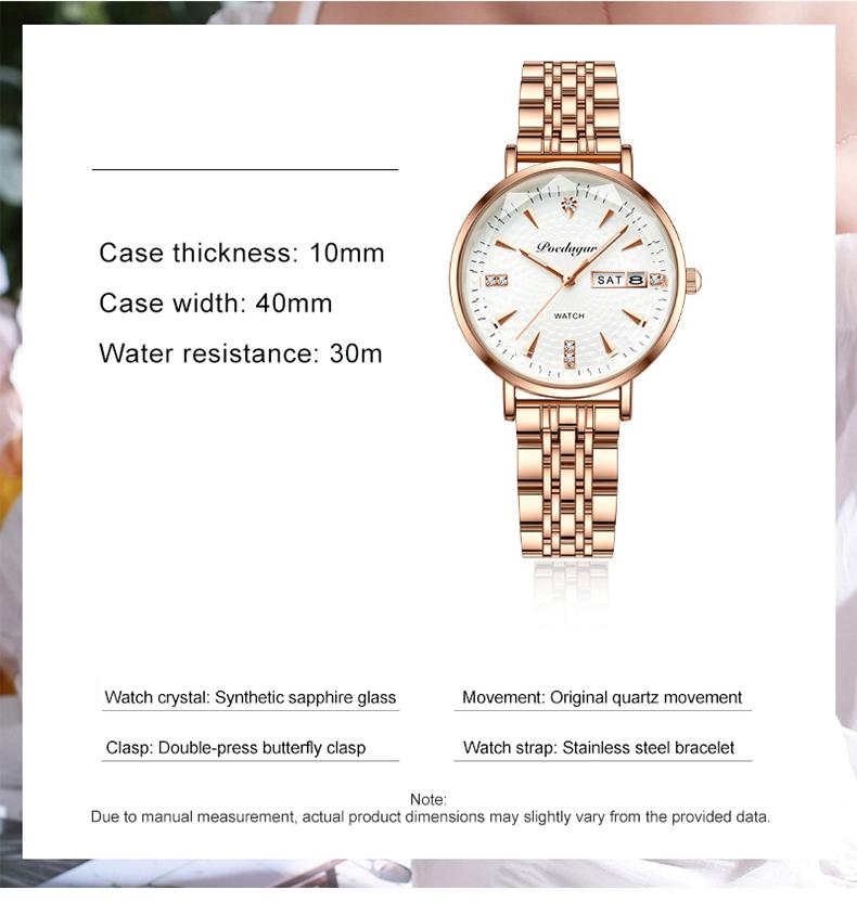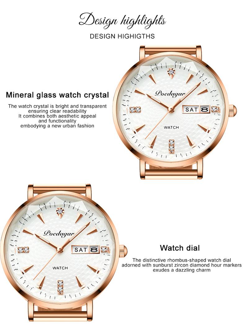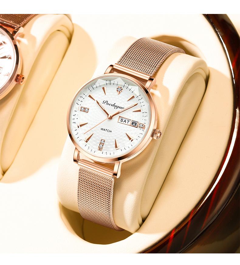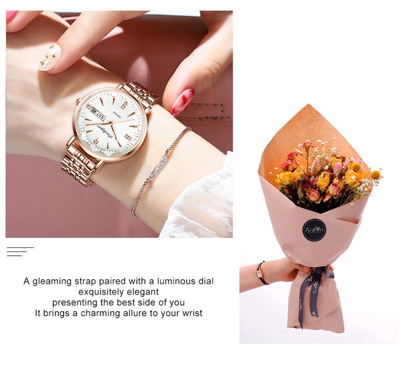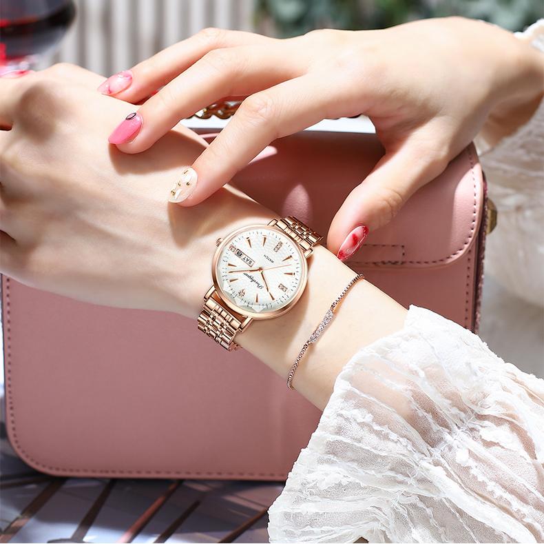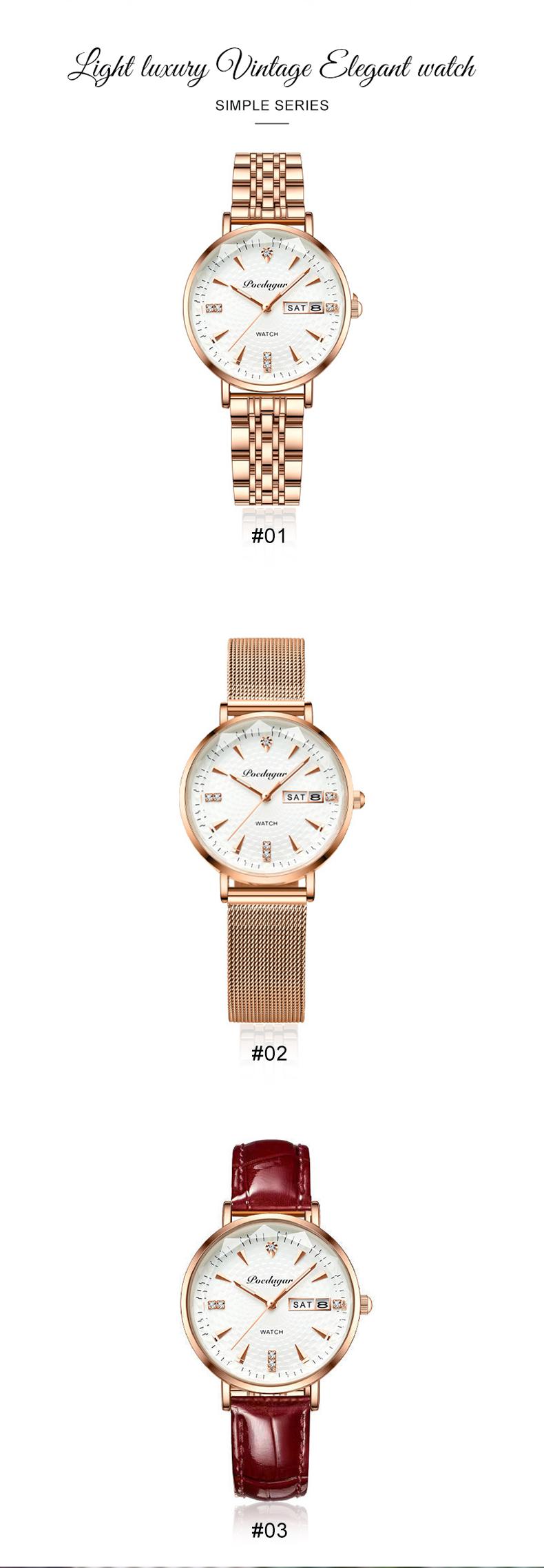 Silvermelody Waterproof Luminous Women'S Watch Female Student Korean Style Trendy Dual Calendar Quartz Watch Ultra-Thin