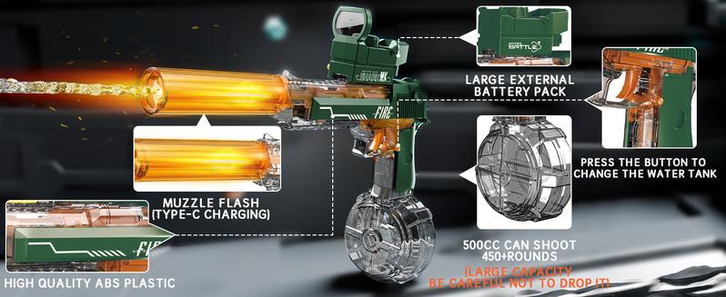 - High-Capacity Water Fun - This electric water gun comes with a large 425 ml water tank, ensuring prolonged battle time during the hot summer water fights and reducing the need for frequent refills, allowing for uninterrupted fun.